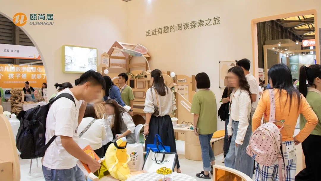 展會現場,溫尚攜其精心研發的全新系列幼兒園家具教玩具產品亮相。吸引了中外眾多幼教同仁駐足參觀、咨詢、洽談。
