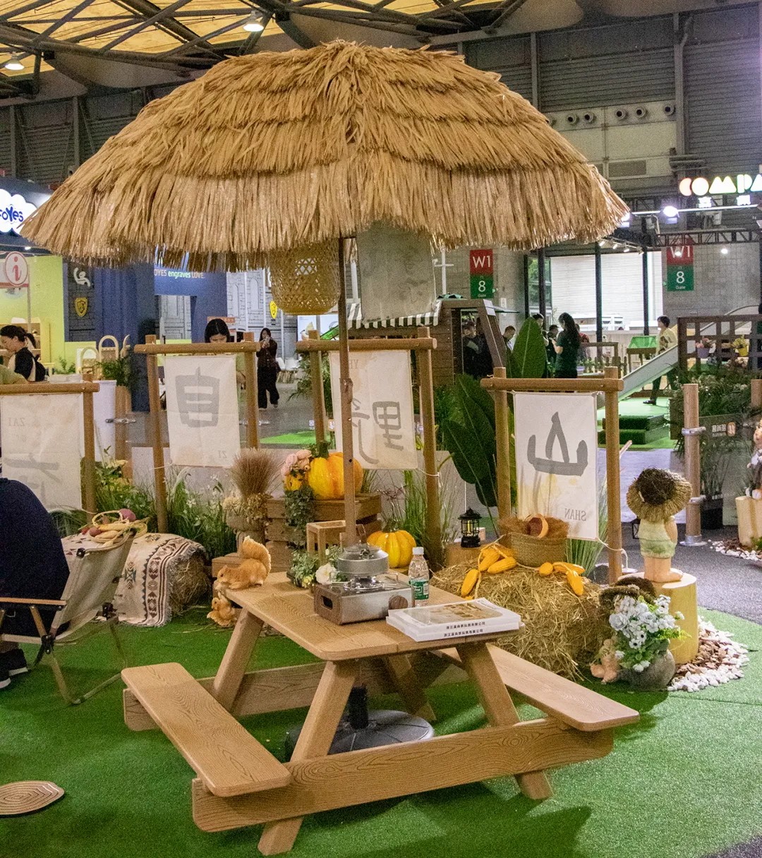 本次參展的戶外系列產品,使用了新型環保材料“香積木”,具有防水防潮防腐、環保安全無毒、著色性良好、觸感溫潤、耐候性強、抗疲勞耐高溫、防滑耐磨等優點。