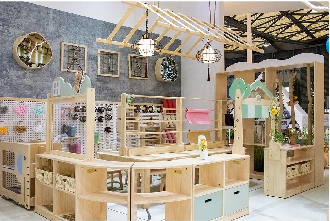本次展會上展出了溫尚設計的托育愛丁堡系列、國潮中式系列等最新系列幼兒園家具。造型獨特、自由搭配。溫馨的設計給小朋友帶來自主的游戲空間。