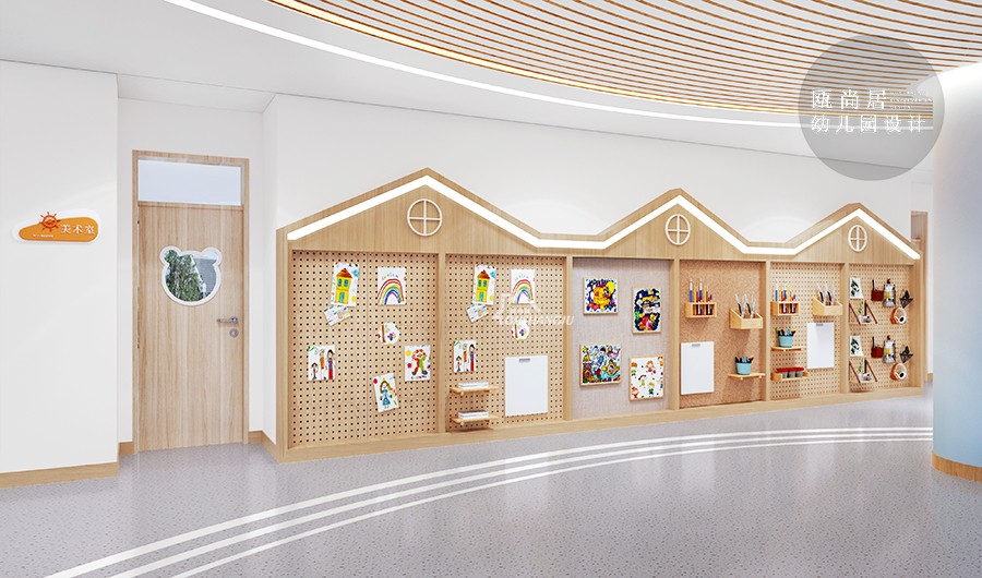 不能單一的看待走廊的環(huán)境,要使其各種功能都得到發(fā)揮。比如,走廊可以作為學習區(qū)域,也可以是游戲區(qū)或者休息區(qū)。這樣的多功能設計,可以更好地利用空間,并滿足孩子們的不同需求。墻面裝飾要能引發(fā)孩子們的互動,如設計一些觸摸感應、交互式游戲等,讓孩子們在游戲中接受教育,增強學習能力。